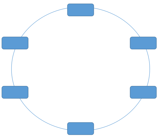 环型拓扑结构:将信息传输线路构成个封闭的环型, 各结点通过中继节点连入网内,各中继节点间首尾相接,信息单向沿环路连点传送。各节点通过通信线路组成闭合的回路,环中数据只能单向传输。环型拓扑结构图如下:
