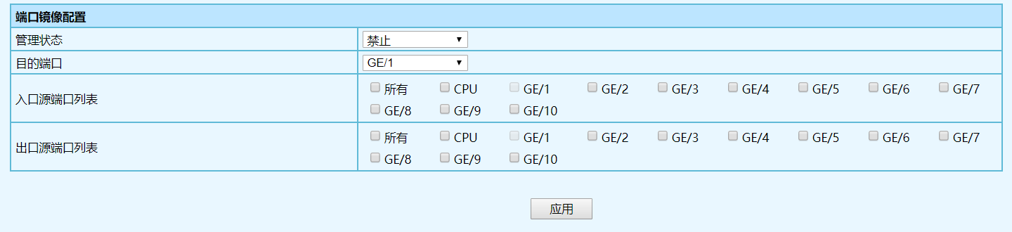 | 目的端口 | 选择端口镜像的目的端口,可通过下拉框进行选择。 |