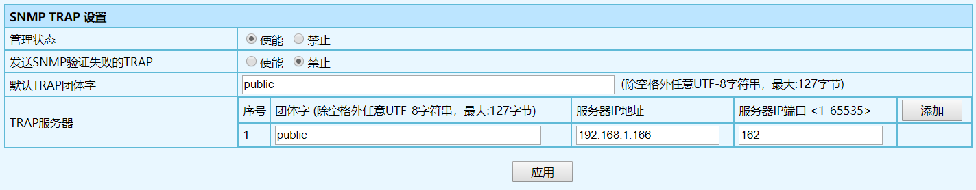 | TRAP 版本 | trap 版本,支持 v1 和 v2c。 |