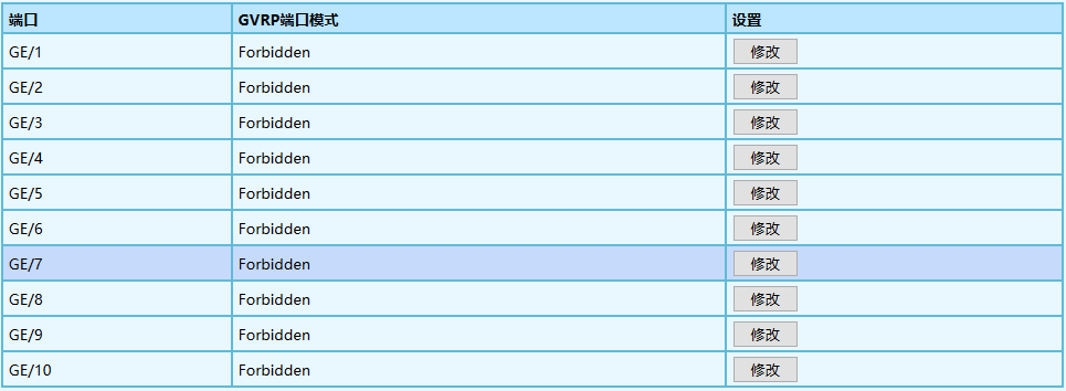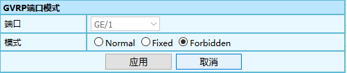 | VLAN 模式 | 端口的 GVRP 模式,默认为 Forbidden。 |