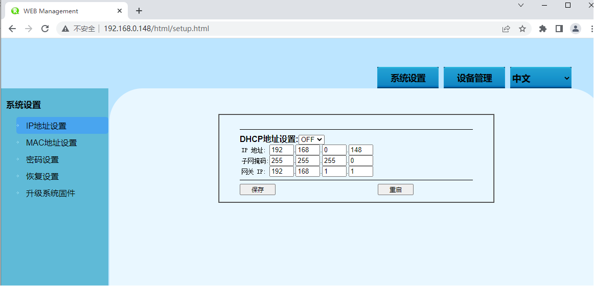 | 升级固件 | 再次使用二进制文件升级系统 |