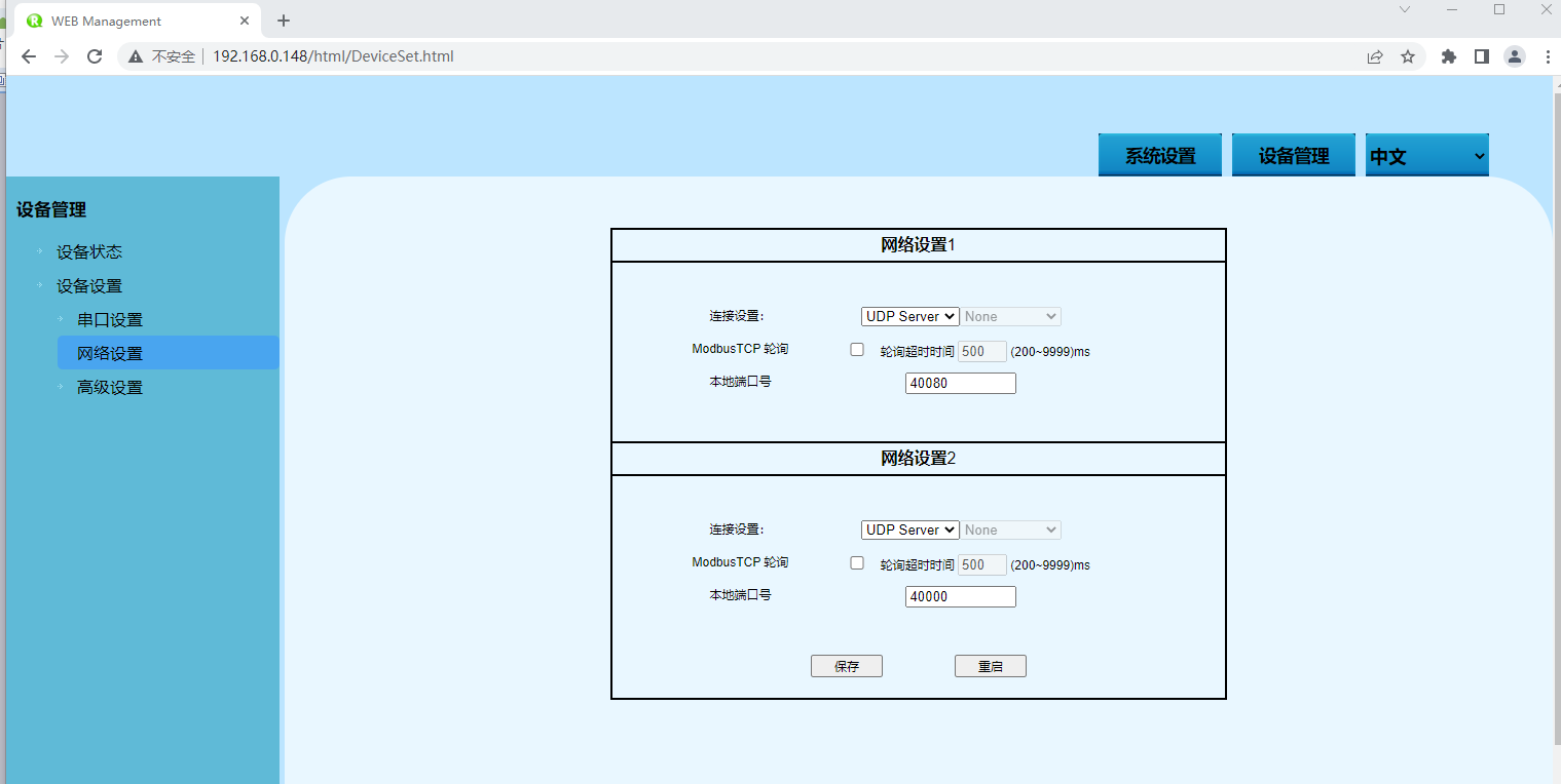 | UDP Server Mode | UDP Server Mode配置栏 |
