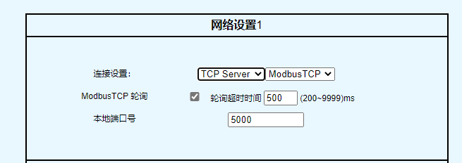 | TCP Server Mode | TCP Server Mode配置栏 |