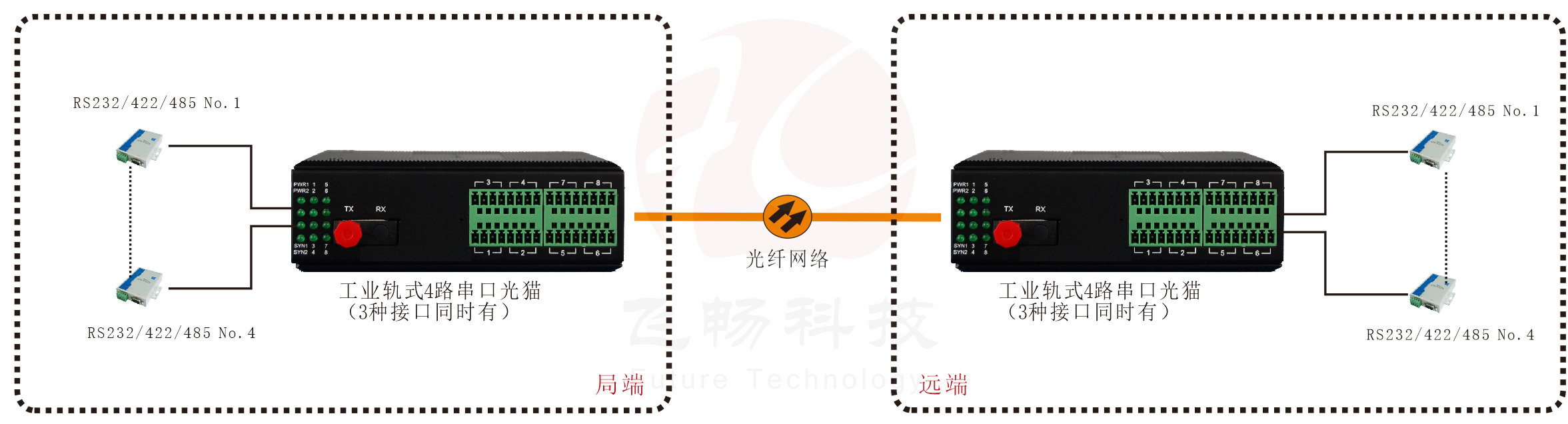 • 飞畅科技-工业轨式1-4路RS232/422/485(三种接口同时提供)光猫